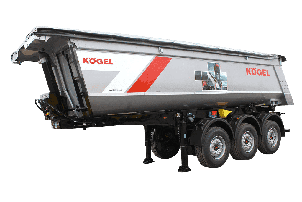 Essieux : Type SAF, suspension pneumatique, groupe triple sans entretien, avec soupape de nivellement, jantes en acier. Pneus dimension 385/65 R22,5 (catégorie premium choisie par Kögel). Jantes avec un déport de 120 mm. Essieu avant relevable.