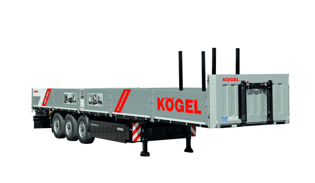 La semi-remorque de construction Kögel Multi peut être utilisée pour le transport de divers matériaux. Elle est adaptée au transport de marchandises palettisées sensibles aux intempéries, ainsi qu’au transport de matériaux hors gabarit en largeur ou en longueur, grâce à ses ridelles latérales amovibles qui peuvent être temporairement placées dans un support.
